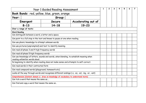 Ks1 Guided Reading Assessment Grids Teaching Resources